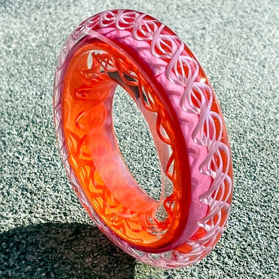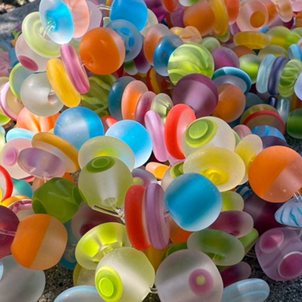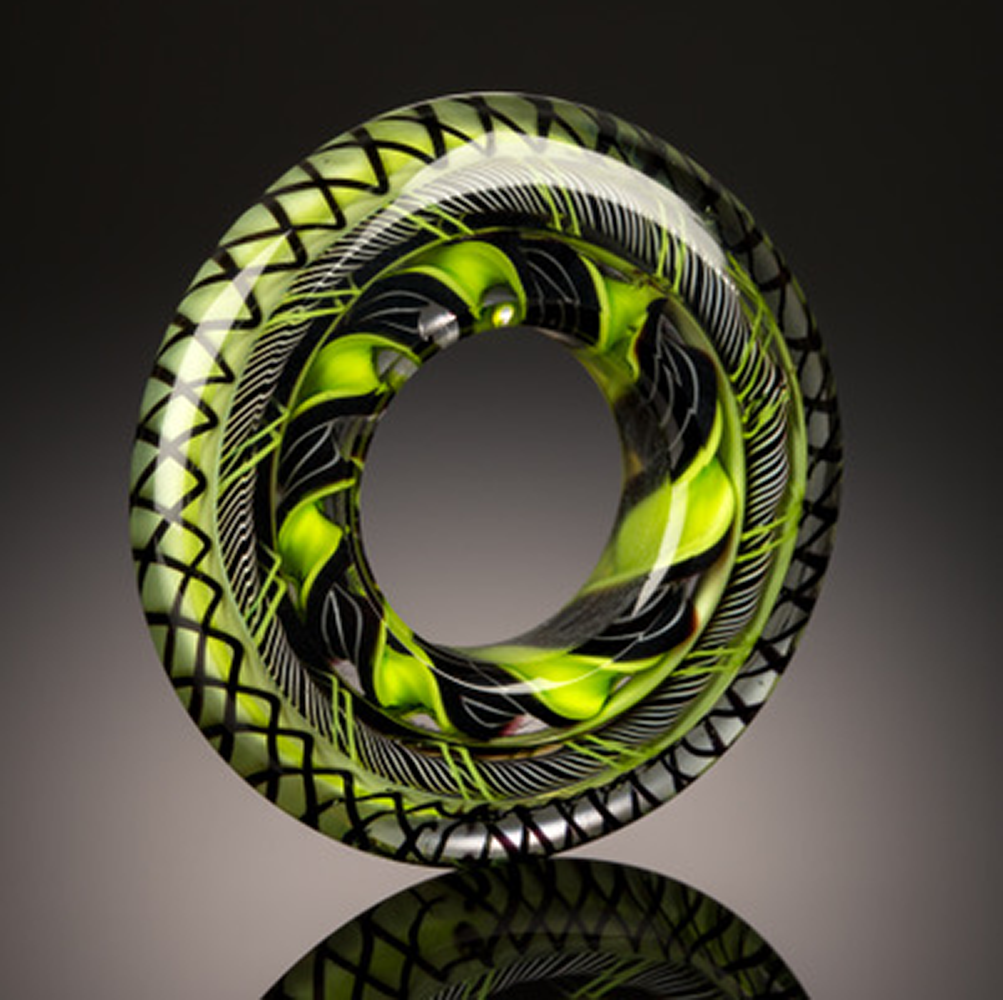 Heather Trimlett is a highly respected teacher and flameworking artist. Her knowledge of glass beadmaking is extensive, shaped by almost 25 years at the torch. Heather’s work approaches perfection and pushes the envelope in shape and form. Her beads are vibrant in their color and enthusiastic design just like she is, their color palette a crisp and clean mix of primary colors.