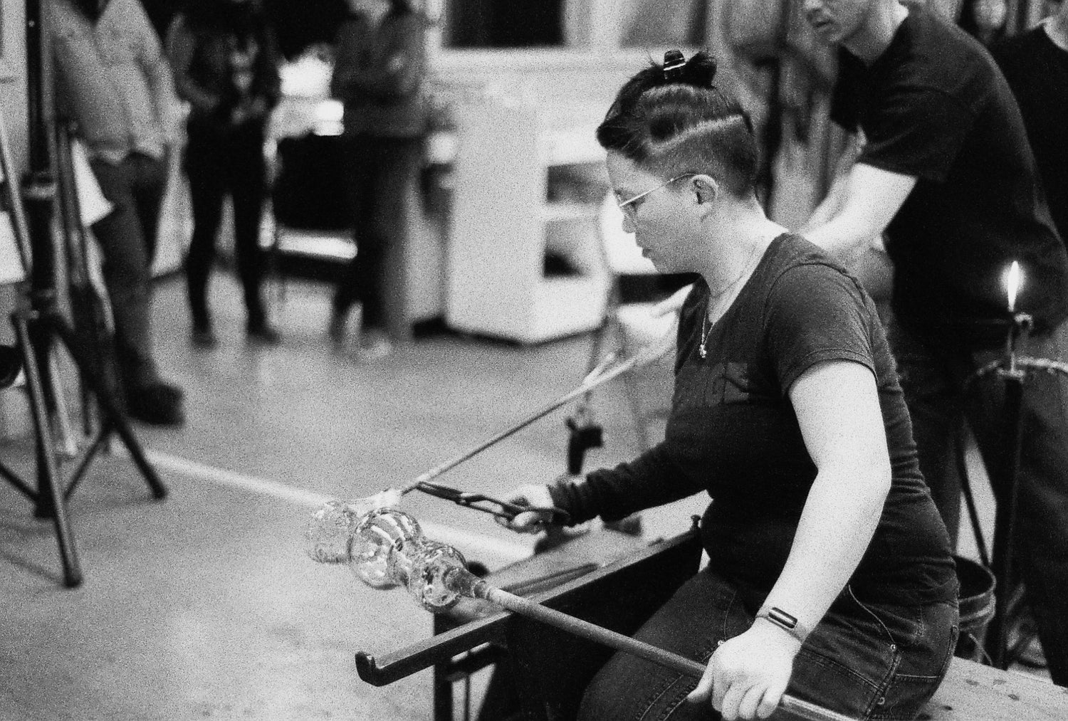 The cold shop is where coldworking happens. Artists put the finishing touches on their work by polishing, sandblasting, cutting, grinding, and more. Water is frequently used in the cold shop, so dress for rain!